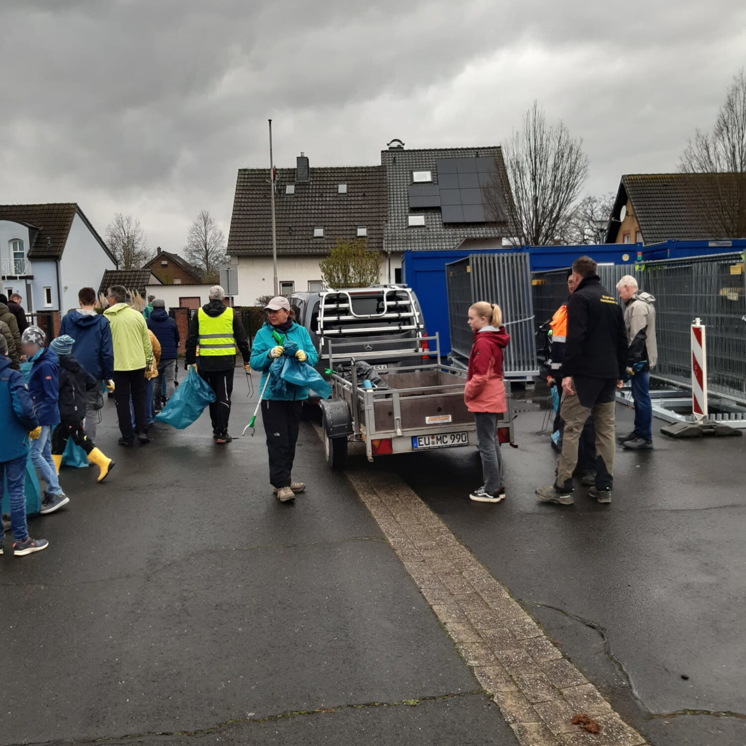 Um 10:00 Uhr fanden sich Jung und Alt zur Entgegennahme der Zangen, Müllsäcke und Handschuhe sowie Bildung von Sammel-Teams auf dem Hof des ehemaligen Bürgerhauses ein. Das Material bzw. Sammelwerkzeug wurde vom Bauhof der Stadt Euskirchen zur Verfügung gestellt.