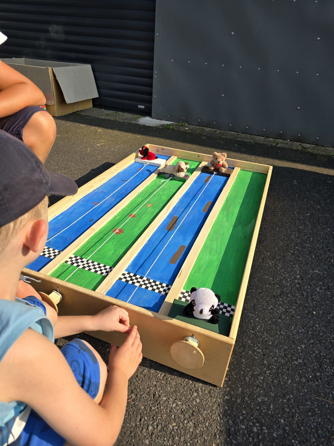 Für die Kinder des Dorfes gab es ein Schminkangebot und diverse kleinere Spiele wie zum Beispiel Dosenwerfen, Leitergolf oder Vier Gewinnt. Ebenfalls waren zwei verschiedene Hüpfburgen sowie eine Torwand mit Schussgeschwindigkeitsmessung per Radar aufgebaut und sorgten für reichlich Spaß. Des Weiteren kam die Feuerwehr zu Besuch und demonstrierte ihre Arbeit. Bei den Löschübungen mussten die Kinder mit dem Wasserschlauch auf Hütchen zielen. Teilweise bevorzugten sie auch eine eigene Abkühlung bei diesen sommerlichen Temperaturen. Das IPS Pylonen-Spiel sorgte zudem bis zu späten Abend noch für Bewegung und Wettkampf-Feeling bei Jung und Alt.