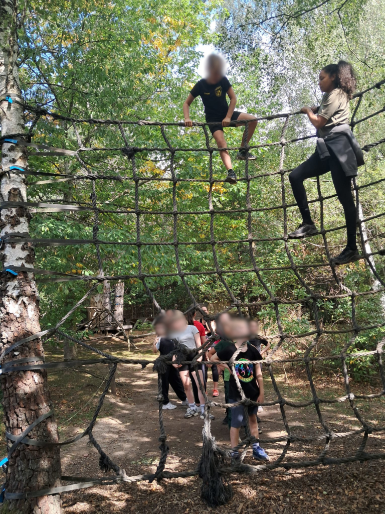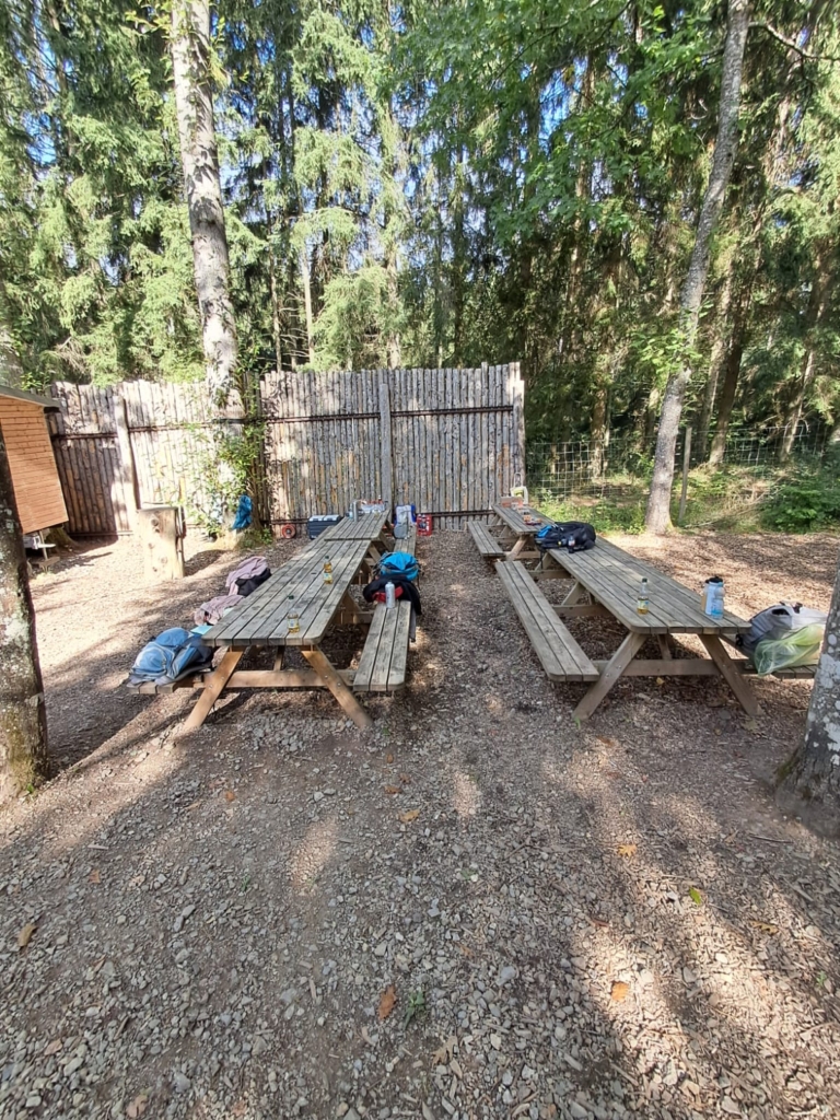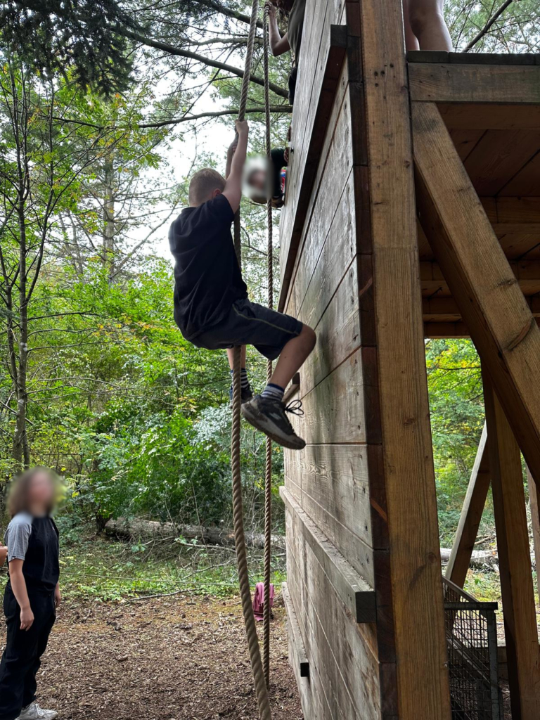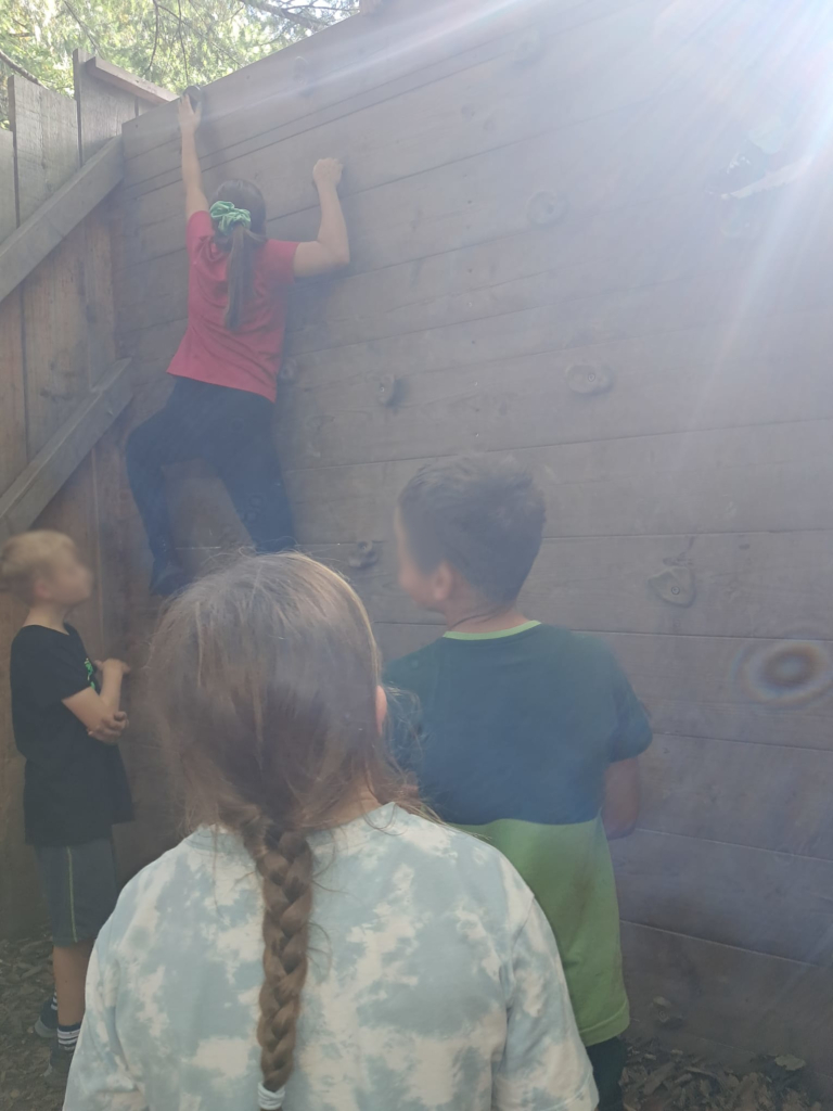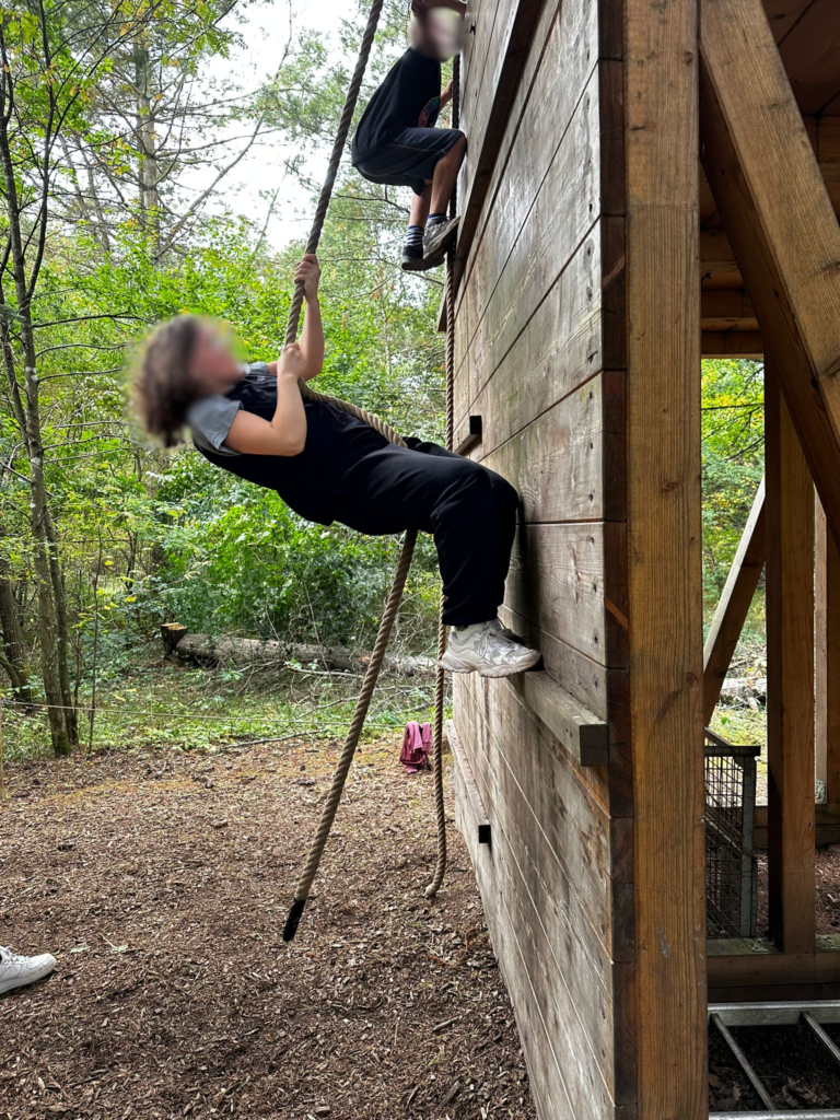 So wurde bereits die Busfahrt nach Nettersheim ein lustiges und lautes Unterfangen. Angekommen schlugen wir unser Camp unter Bäumen in der Natur mitten im Wald auf. Stromerzeuger, Kühlbox und Campingkocher unterstützten uns bei der Lagerverpflegung in Form von Hotdogs, Getränken und Knabbereien. Bewegung an der Luft macht hungrig! Nach Einweisung in die Hindernisbahn und Tipps zu Klettertechniken mit und ohne Teamerfordernis nahmen unsere Kids den Parcours bei bestem Wetter in Angriff. Mehrere Runden wurden gedreht, bei denen sich bei den Hindernissen für jeden ein besonderer Favorit herausbildete.