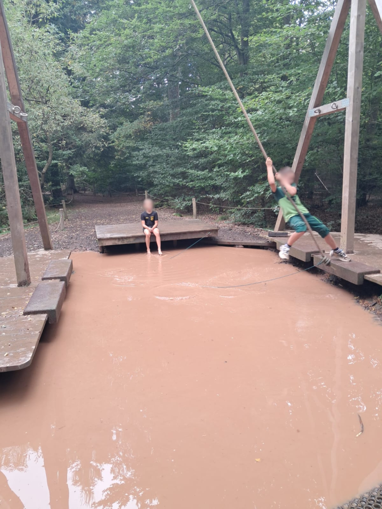 Gegen Ende waren einige Kids sogar so weit, sich in die Fluten oder den Schlamm zu stürzen, um ein Hindernis zu überwinden. Dank Wechselwäsche kamen alle Kids gegen Abend wohlbehalten nach Kleinbüllesheim zurück, wo wir den Tag im Pfarrheim bei Pizza und Getränken sowie Gesprächen über das Erlebte ausklingen ließen.