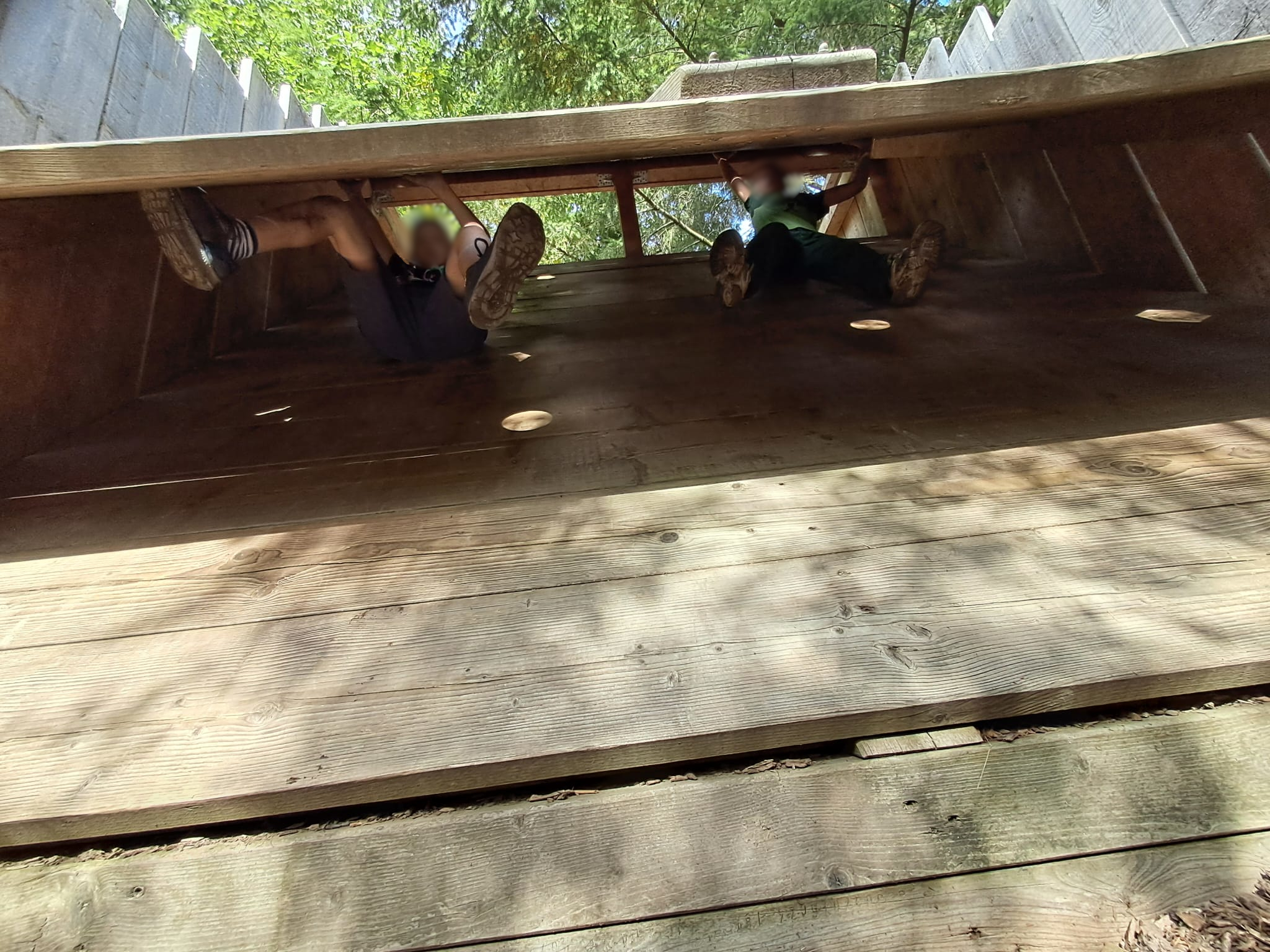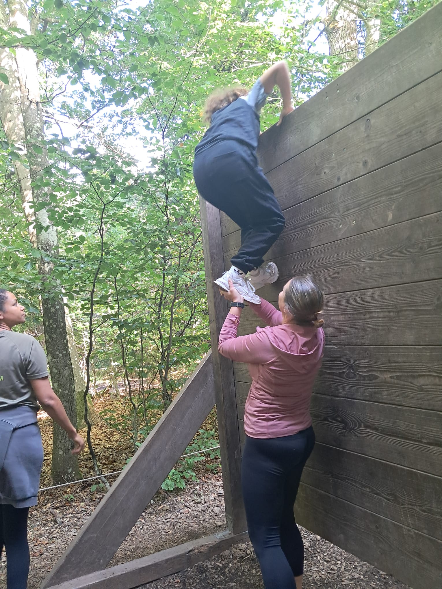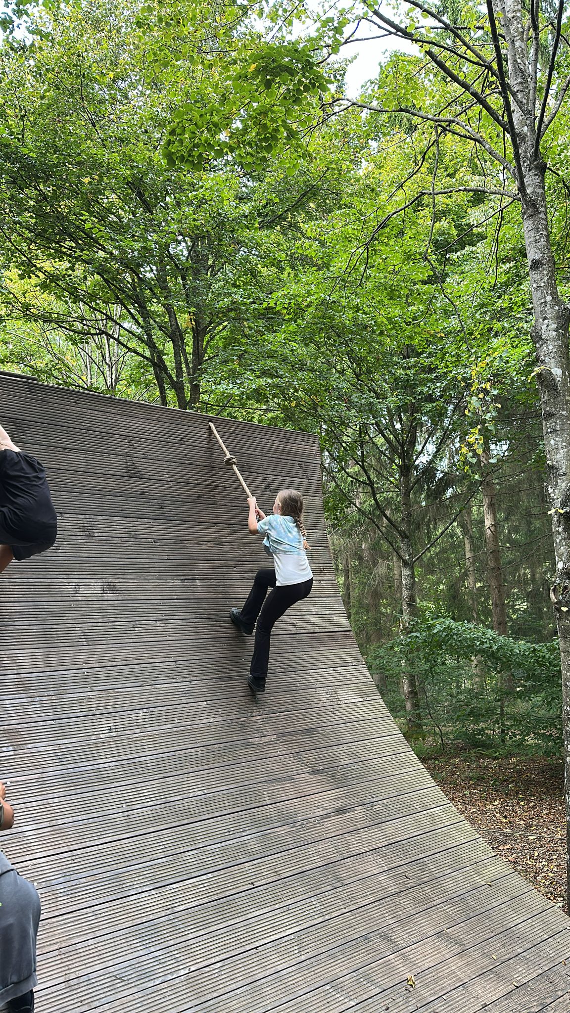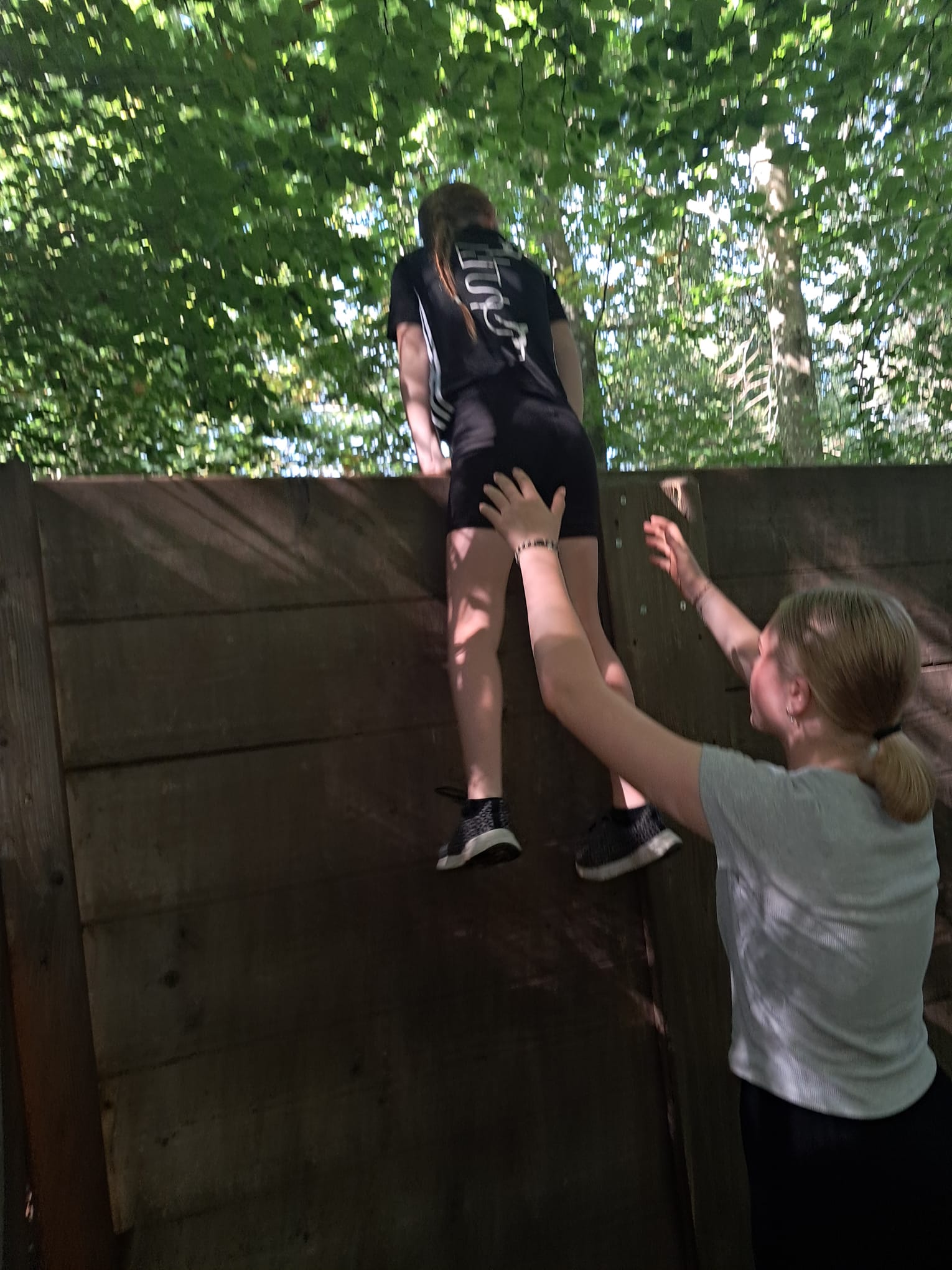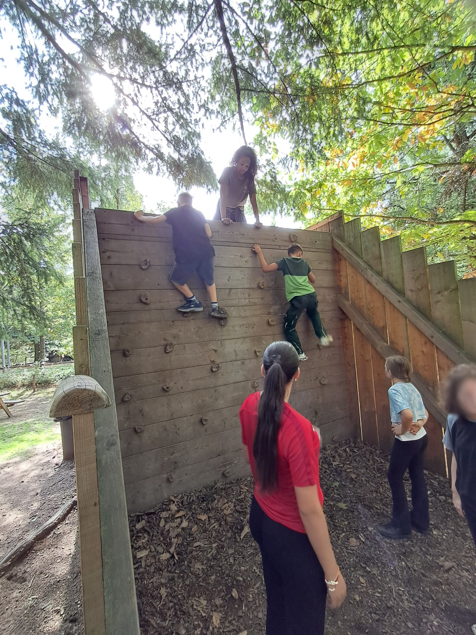 So wurde bereits die Busfahrt nach Nettersheim ein lustiges und lautes Unterfangen. Angekommen schlugen wir unser Camp unter Bäumen in der Natur mitten im Wald auf. Stromerzeuger, Kühlbox und Campingkocher unterstützten uns bei der Lagerverpflegung in Form von Hotdogs, Getränken und Knabbereien. Bewegung an der Luft macht hungrig! Nach Einweisung in die Hindernisbahn und Tipps zu Klettertechniken mit und ohne Teamerfordernis nahmen unsere Kids den Parcours bei bestem Wetter in Angriff. Mehrere Runden wurden gedreht, bei denen sich bei den Hindernissen für jeden ein besonderer Favorit herausbildete.