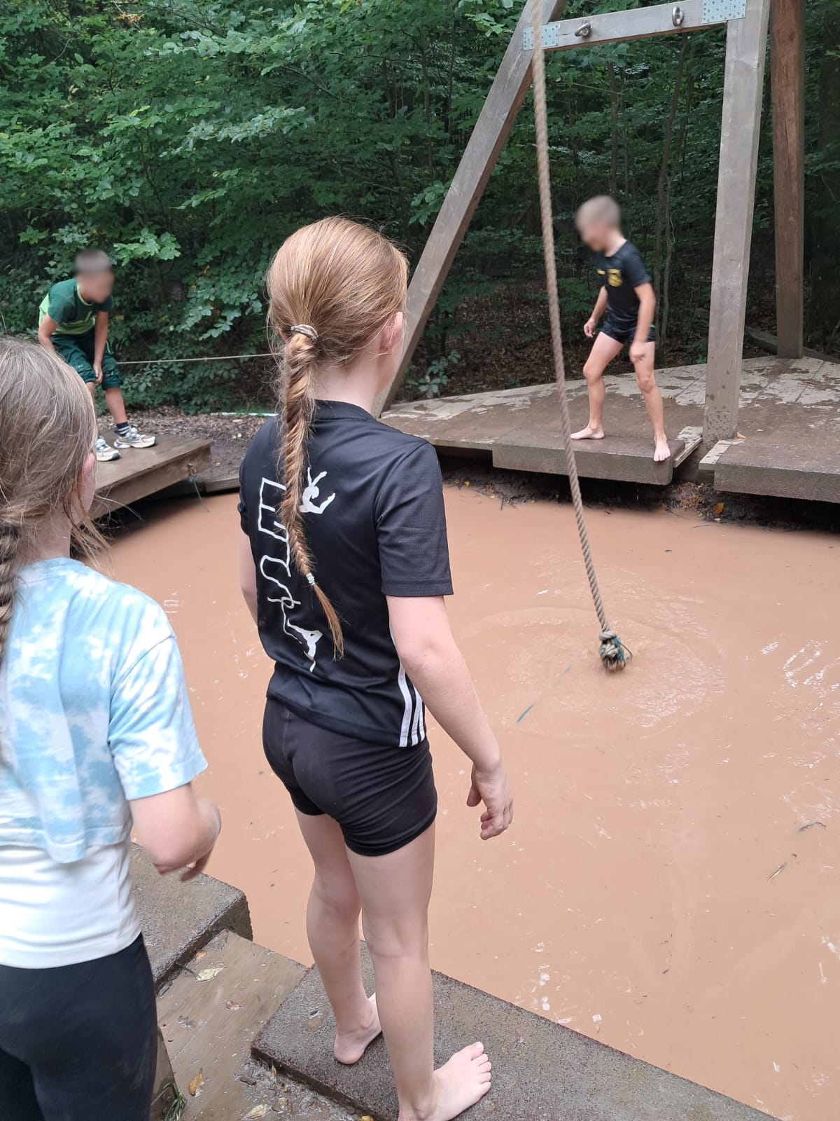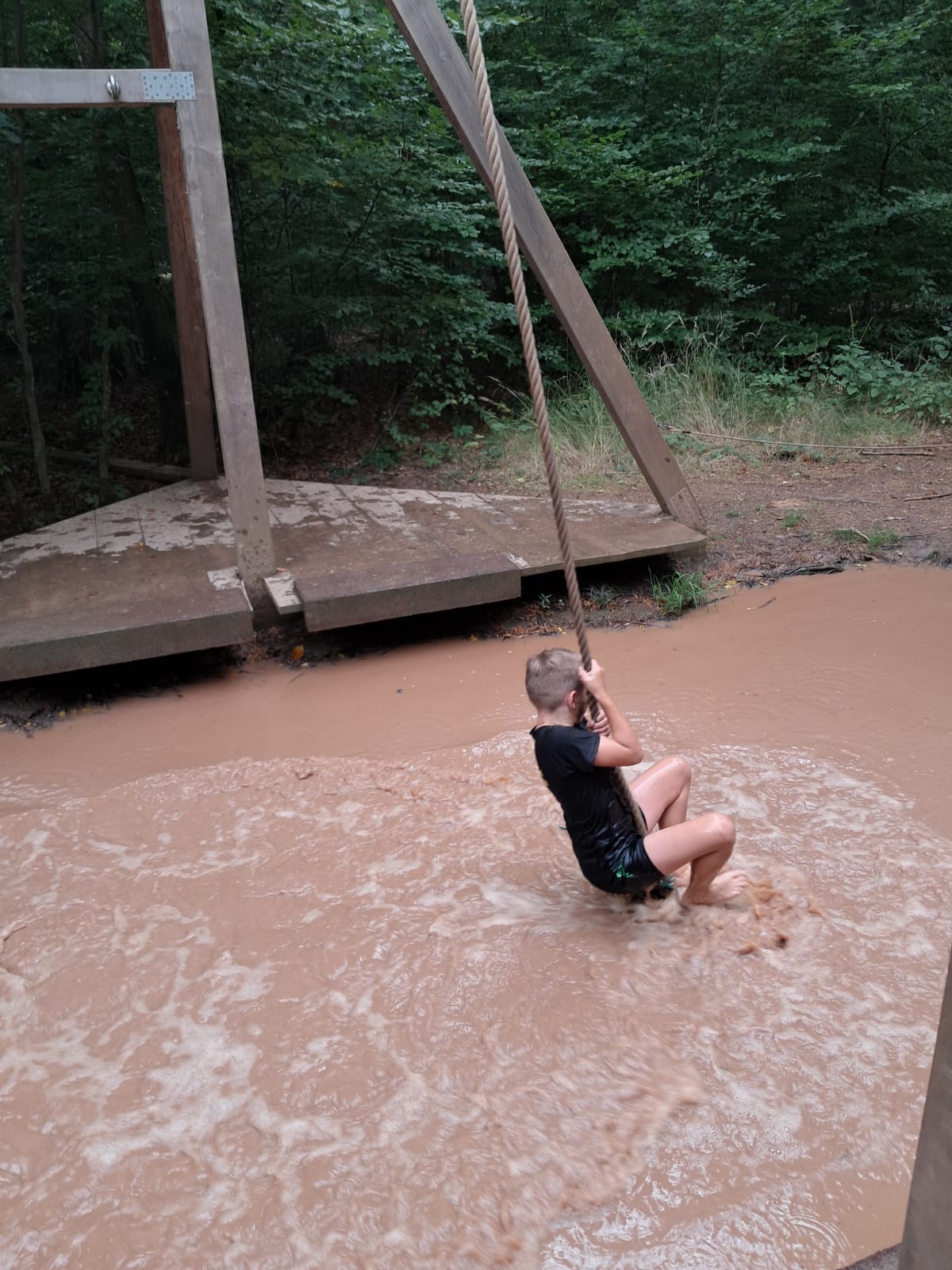 Gegen Ende waren einige Kids sogar so weit, sich in die Fluten oder den Schlamm zu stürzen, um ein Hindernis zu überwinden. Dank Wechselwäsche kamen alle Kids gegen Abend wohlbehalten nach Kleinbüllesheim zurück, wo wir den Tag im Pfarrheim bei Pizza und Getränken sowie Gesprächen über das Erlebte ausklingen ließen.