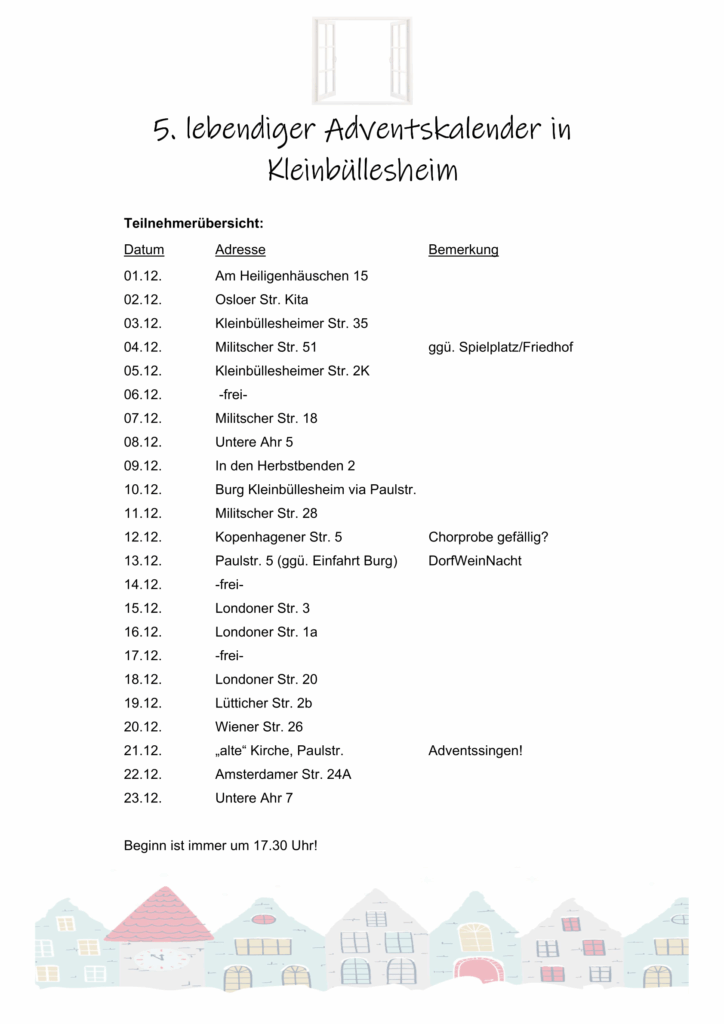lebendiger Adventskalender 2025 Übersicht der Fenster und Einladung Tannenbaumfest